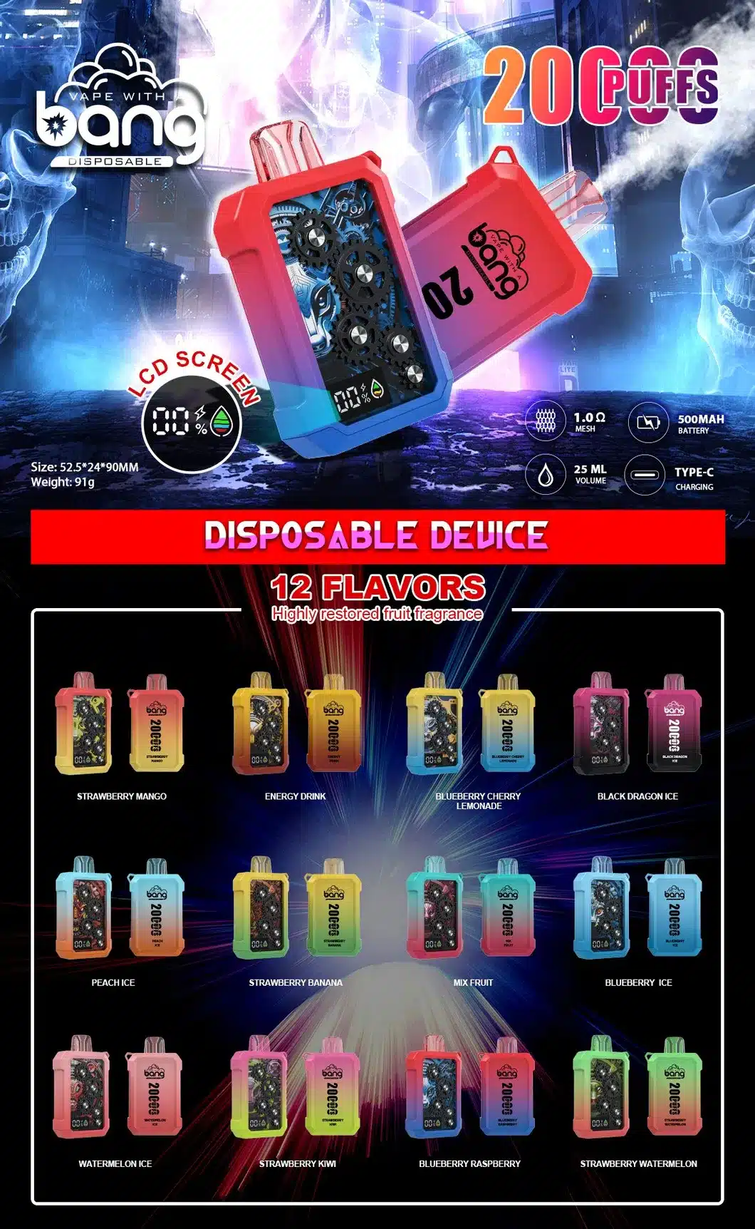 BANG WHEEL 20000口是一款結合創新旋轉切換口味功能與超大容量設計的一次性電子煙,單支可吸高達20000口,續航與口感兼具。無論你想要甜潤果香還是清涼冰感,只需輕輕轉動即可切換,為你帶來雙倍的味覺享受。