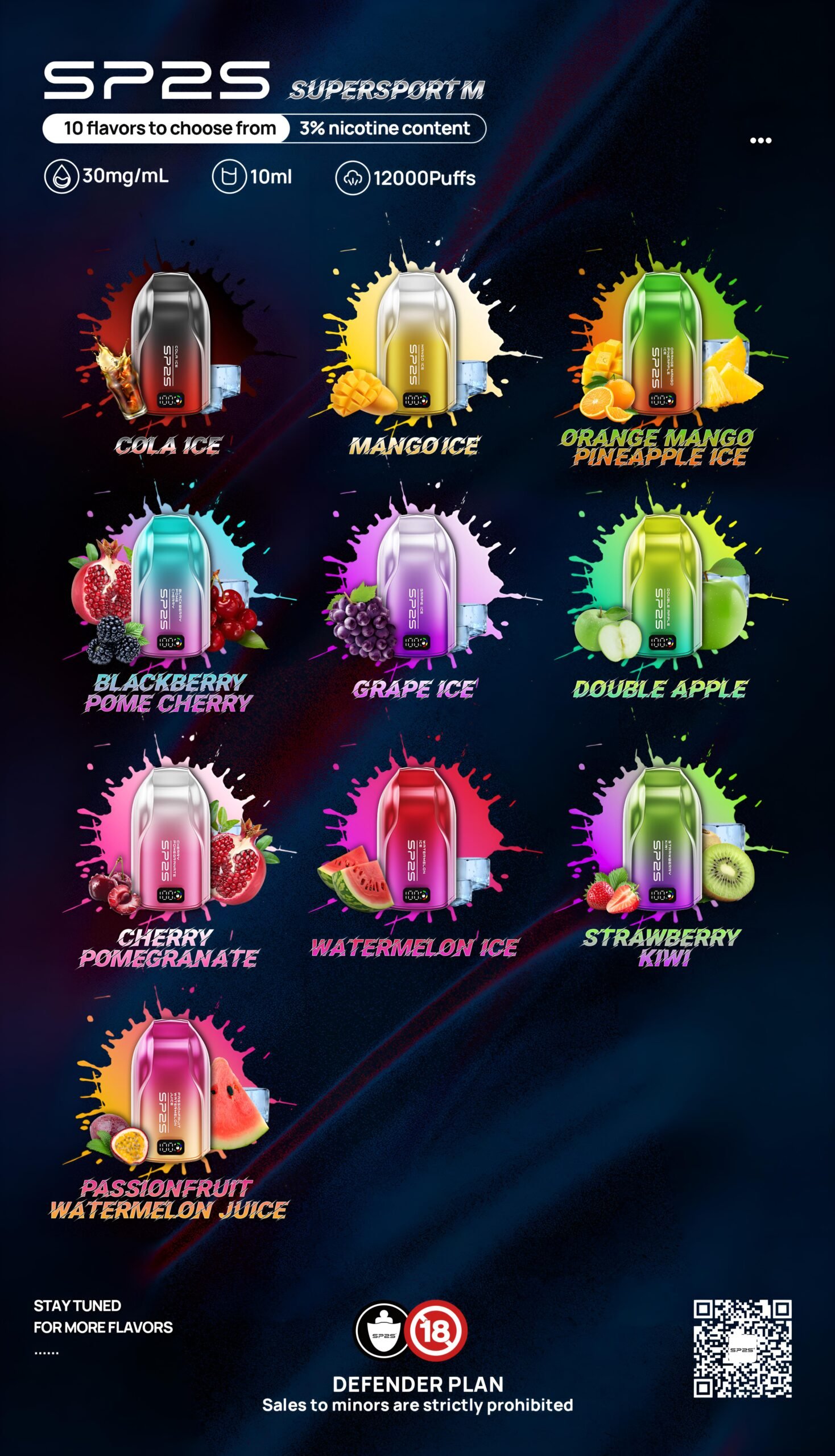 SP2S 12000口一次性電子煙提供多款熱門口味選擇,適合追求大容量與穩定口感的使用者,下單前可先確認口味庫存狀況。