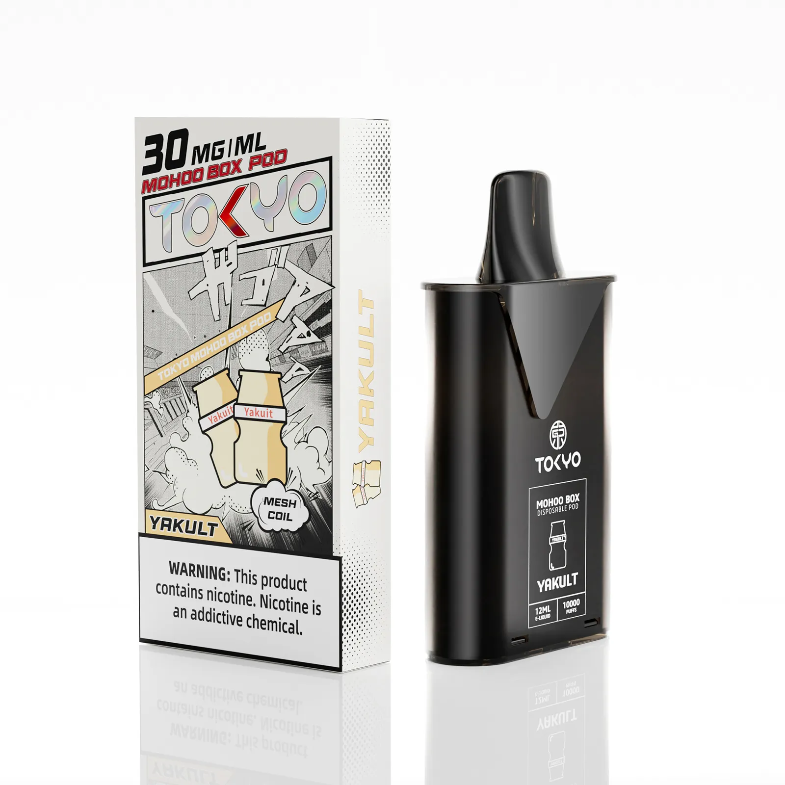 東京魔盒電子煙煙彈採用植物甘油與丙二醇基底,搭配高純度尼古丁鹽,容量 12mL、尼古丁強度 30mg/mL(3%),搭載 1.0Ω 鋼網棉霧化芯,設計為一次性 pod,約 10,000 口,吸引力持久。